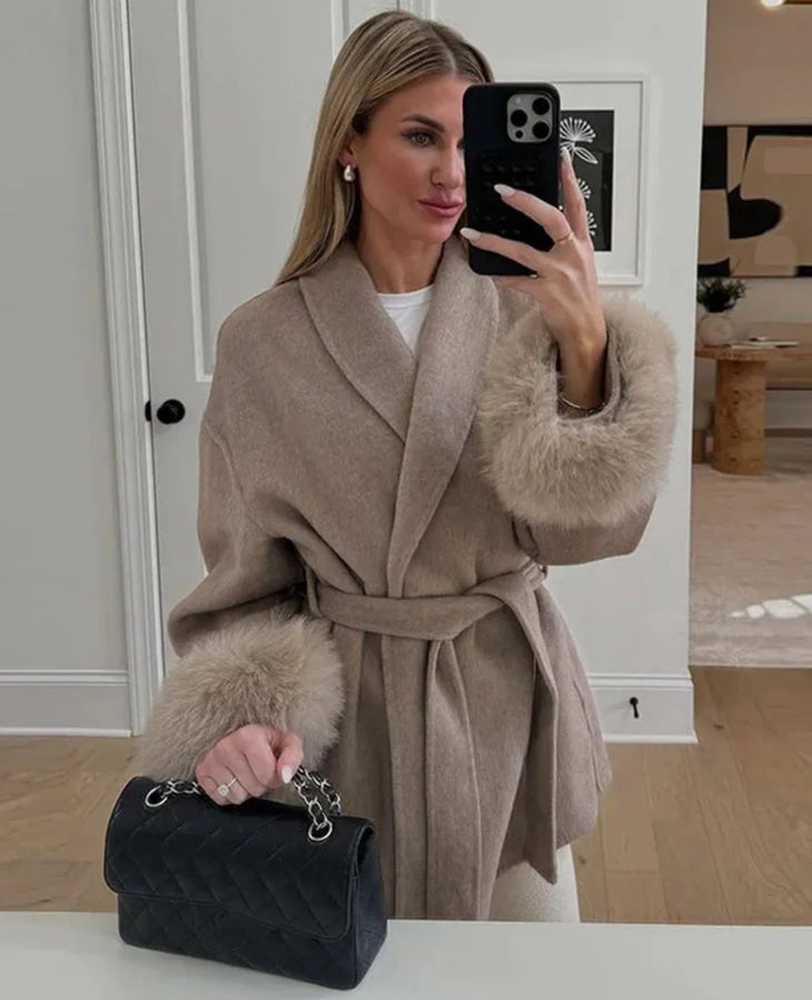 Cappotto elegante e caldo, con cappuccio rifinito in eco-pelliccia per un tocco di classe. La zip frontale e i polsini a coste lo rendono pratico e stiloso, perfetto per le giornate più fredde. Abbinalo a top e jeans per un look versatile e alla moda che ti accompagnerà in ogni occasione.